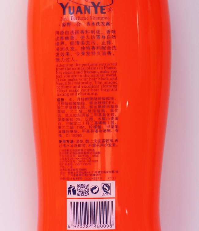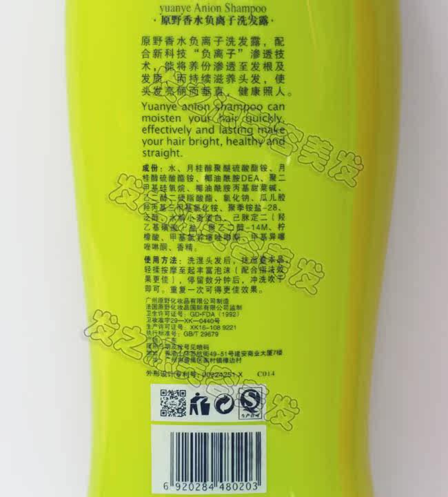 【品名】:原野香水负离子洗发露(加倍柔顺/去屑/止痒)