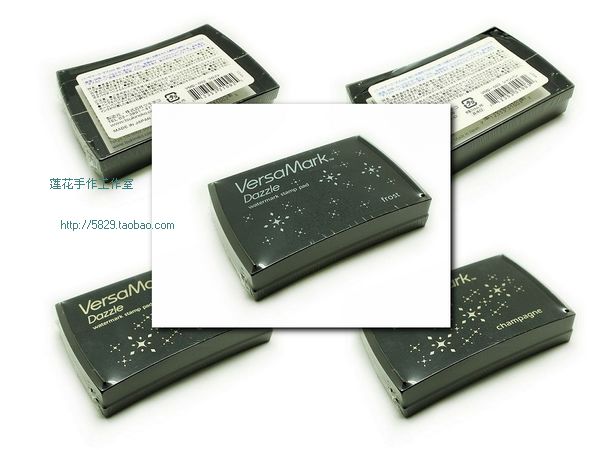 说明:带有亮晶晶的香槟色、银霜色印台,浓淡相宜,让作品呈现出上品的光辉。用于普通纸(深色)、相片、光泽纸上。用于普通纸,可制作水印、浓淡双色调效果的无色透明印台。由于具有粘性,粉笔粉末、凸粉等均可上色使用。说明:带有亮晶晶的香槟色、银霜色印台