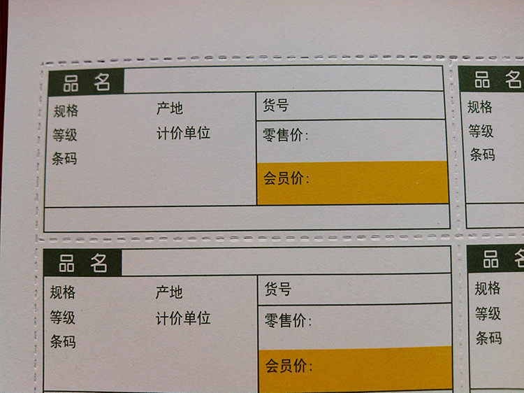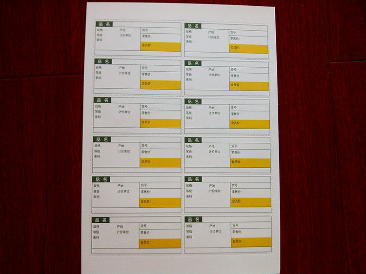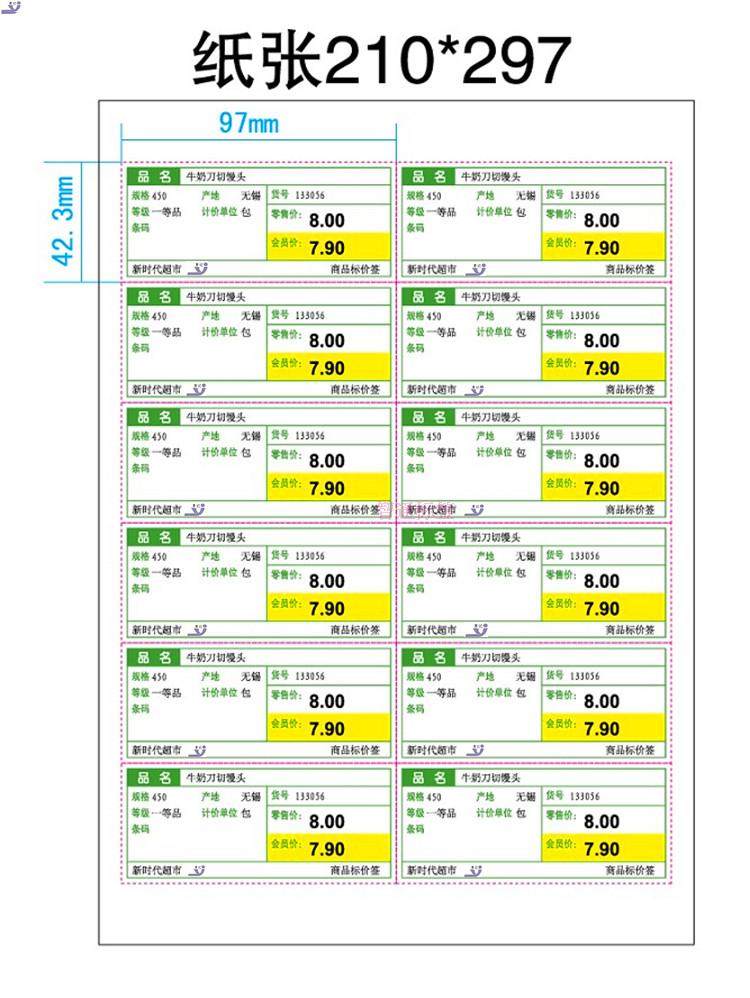 超市价格签:A4尺寸上面有12枚标签。采用进口120G卡纸生产。品质包装。不伤打印机。激光喷墨都可以打印。买送打印模板。原价1.2元1张A4。新促销0.8元。错过就涨价了!