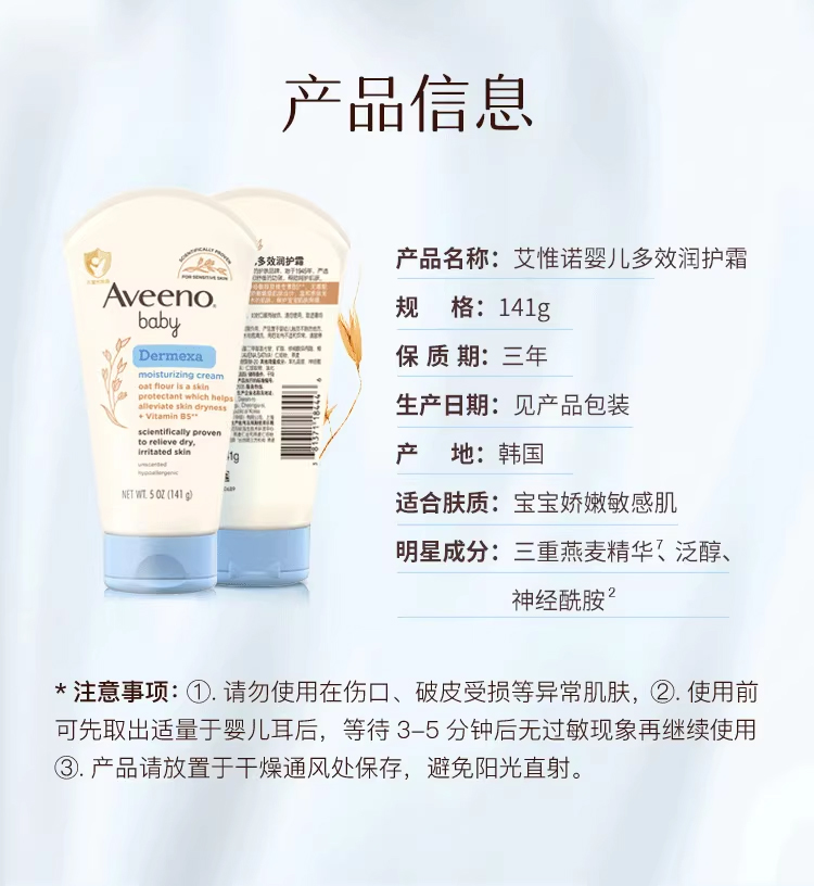 Детский крем Aveeno для младенцев, специально разработанный для осени и зимы, восстанавливающий и увлажняющий крем для детей