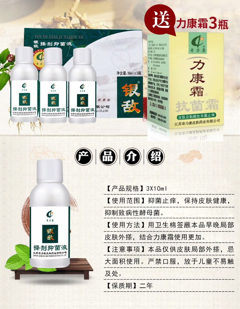Мазь Qilikang Yindi оригинальная для наружного применения при зуде кожи и псориазе 30мл*3 флакона с кремом Likang