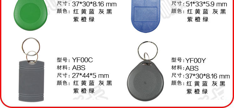 ID彩色钥匙扣卡,光面刻码。本店所售所有钥匙扣,质量优良,全部采用大线圈,大外壳读卡距离良好。具有良好的性价比。