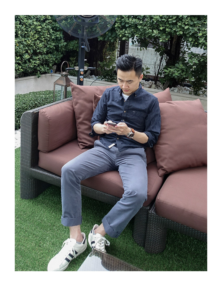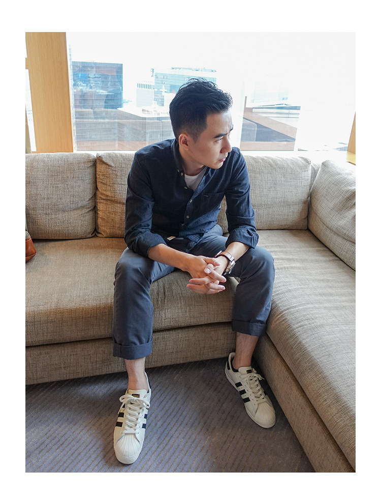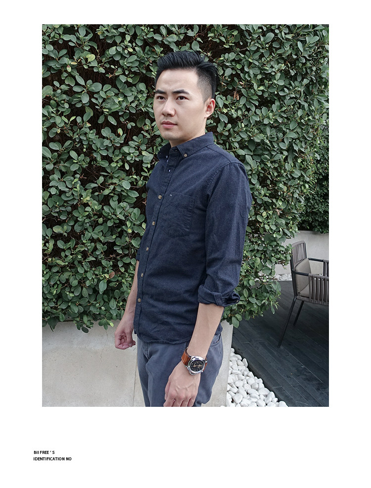 Осенняя оригинальная мужская рубашка с длинным рукавом слим-фит в стиле Юй Вэньлэ, темно-синяя, чистый хлопок, повседневная молодежная рубашка