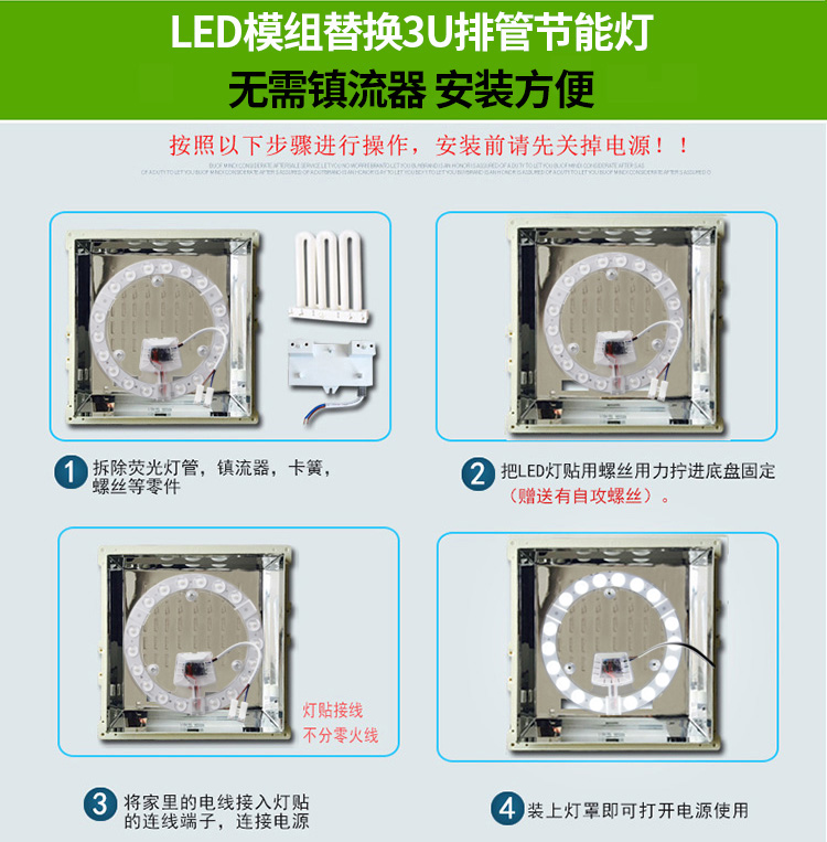 1、采用优质三基色荧光粉,亮度高,光输出增加,更节能。