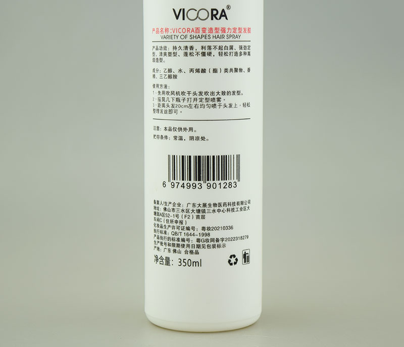 为最后的造型提供长久的定型;含有水溶性配方,易于清洗;可以重复造型;含有维他命原B5和紫外线过滤元素,造型头发的同时,令头发营养滋润。