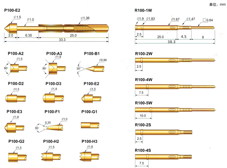 PA100-H2 华荣探针 九爪梅花顶针 1.7mm全镀金针弹簧针