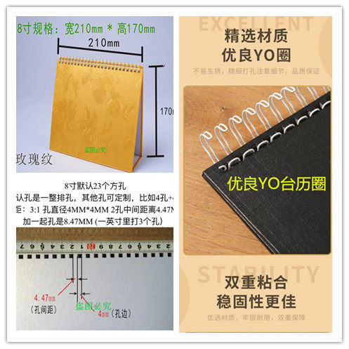 (配圈),7寸和6寸可多装 。 8寸台历架7本一公斤,7寸10本一公斤  6寸