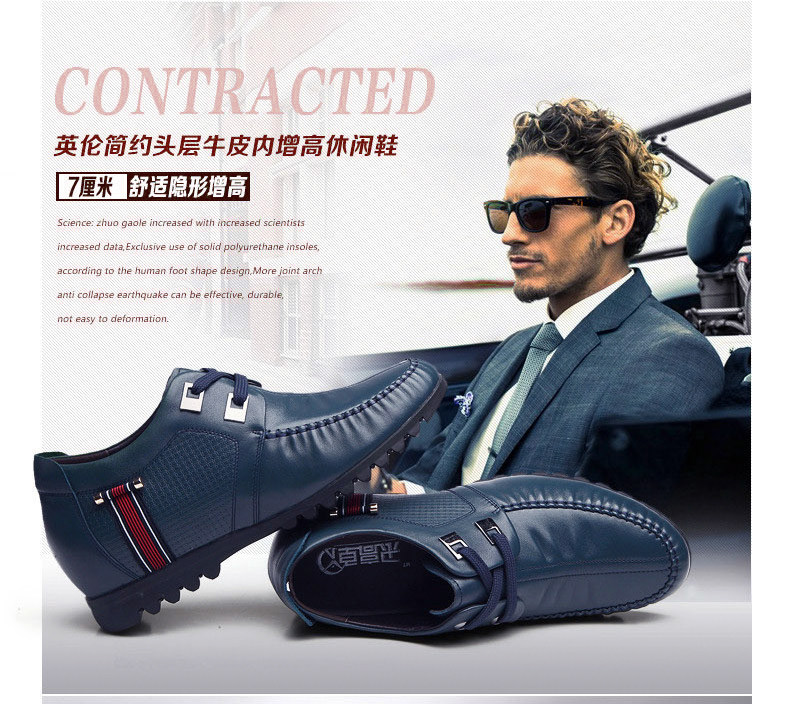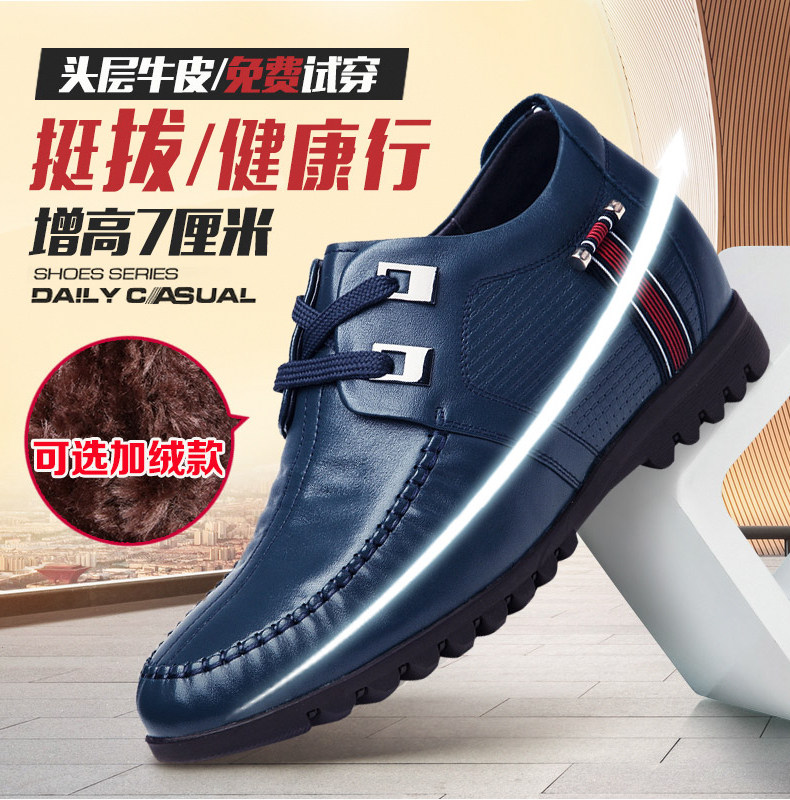 Осень 2024 Новая Модель Мужской Обуви из Натуральной Кожи с Поднятием Высоты, Повседневные Деловые Туфли