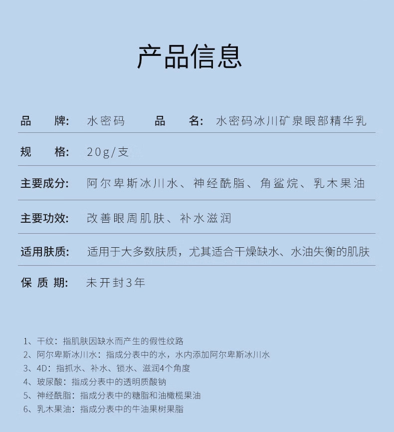水密码眼霜眼部精华乳淡化细纹黑眼圈眼袋补水保湿滋润紧致正品