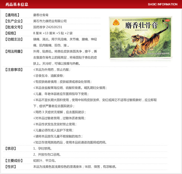 | 产品剂型 | 贴膏剂(橡胶膏剂) |