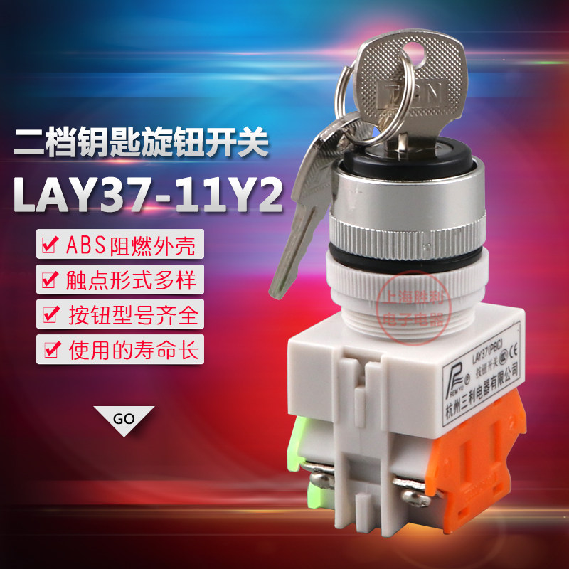 杭州三利 按钮开关LAY37-11Y2 20Y3 带钥匙二位/三位 常开常闭