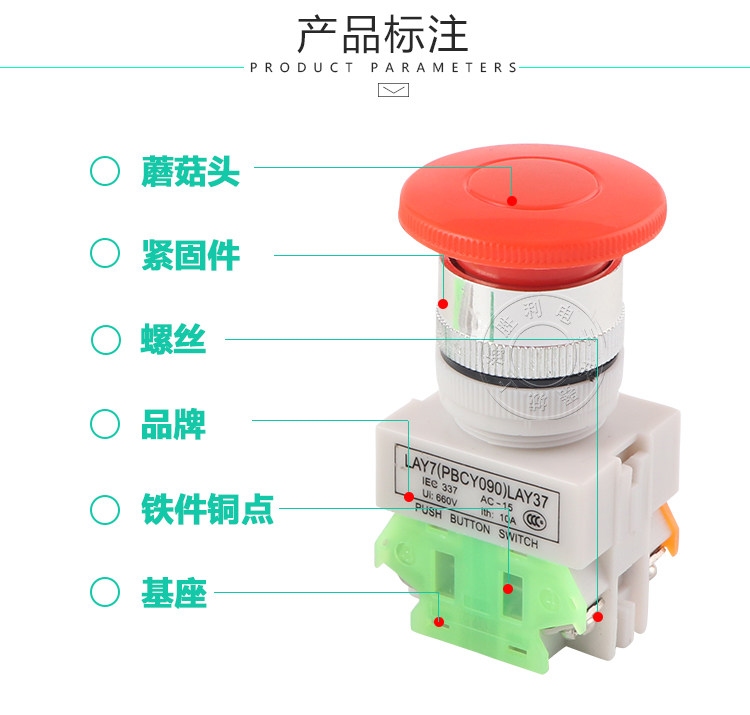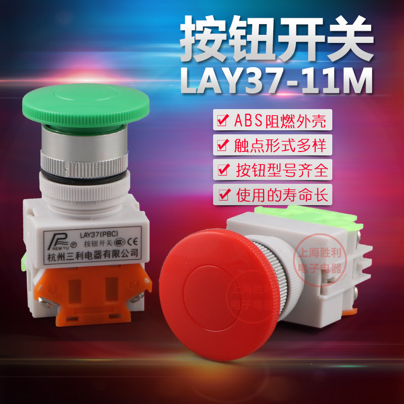 杭州三利 按钮开关LAY37-11M(PBC)Y090-11M LAY7-11M 蘑菇头按钮