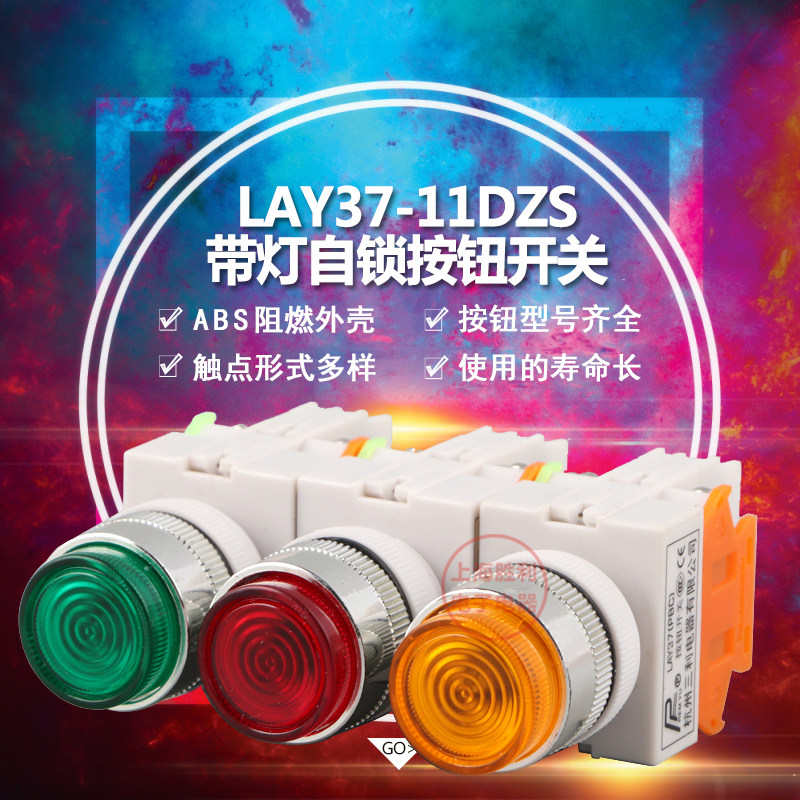 LAY37-11DN(PBCY090)LAY37 三利带灯按钮开关自复位220V电压可选