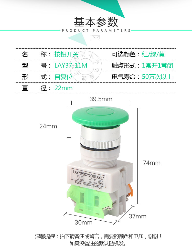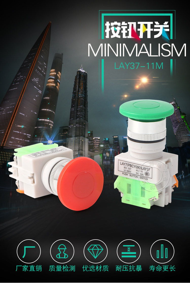 按钮开关LAY37-11M(PBC)Y090-11M LAY7-11M 蘑菇头按钮 22MM