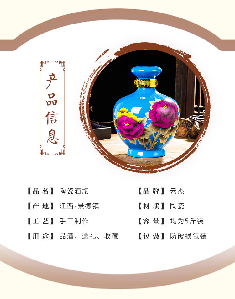 景德镇陶瓷酒瓶5斤装带盖密封圈白酒瓶青花瓷瓶酒坛子酒具厂直销