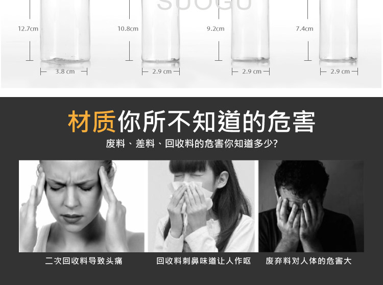 200ml配盖子尺寸:直径4.6cm,整个瓶高16.2cm。