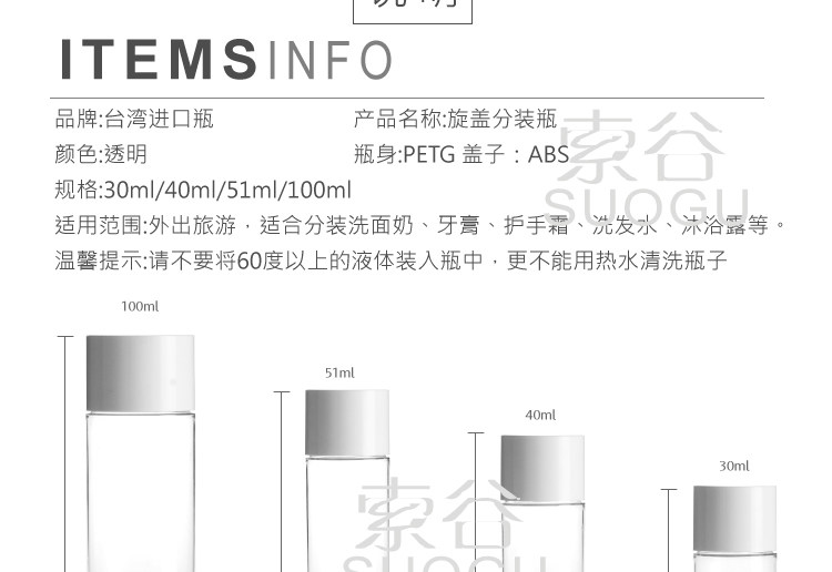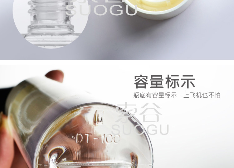 100ml配盖子尺寸:直径3.8cm,整个瓶高12.6cm。