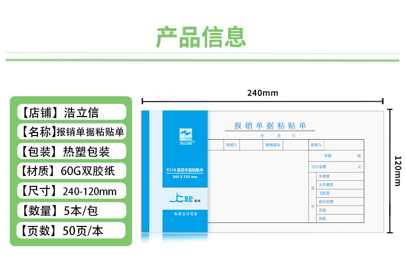 浩立信费用报销费单审批单据财务专用通用会计记账凭证纸办公用纸