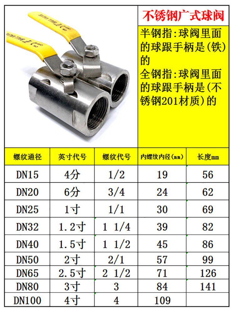 | 颜色分类 | 半钢DN15 (4分),半钢DN20 (6分),半钢DN25 (1寸),半钢DN32 (1.2寸),半钢DN40 (1.5寸),半钢DN50 (2寸),全钢DN8(2分),全钢DN10 (3分),全钢DN15 (4分),全钢DN20 (6分),全钢DN25 (1寸),全钢DN32 (1.2寸),全钢DN40 (1.5寸),全钢DN50 (2寸),全钢DN65 (2.5寸),全钢DN80 (3寸),全钢DN100 (4寸) |