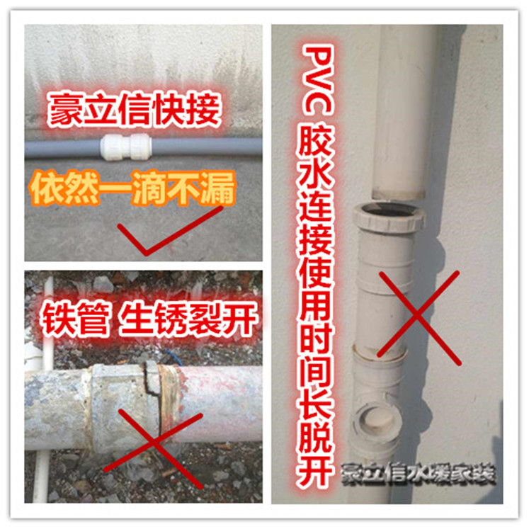 科技在发展,咱们从镀锌管时代到PPR热熔时代至今已有十多年历史,这些年来随着PPR管件热熔使用过程中出现了一些弊端和不足,比如管径流量变小,脱胶.无电源安装不便等缺点,但现在使用热熔器连接同时存在很大因漏电引起的安全事故隐患。因为特别是近几年来随着中国经济的快速崛起和国内人工工资的每年百分之二十的递增,所以当今社会讲究的是如何快速工作,提高工作效率才是硬道理。你看看吧···