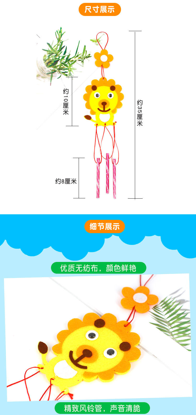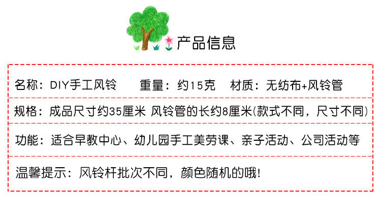| 颜色分类 | 布艺风铃(拍总数,混发),布艺风铃(1#小兔),布艺风铃(2#狮子),布艺风铃(3#海鲸),布艺风铃(4#蝴蝶),布艺风铃(5#猫头鹰),布艺风铃(6#鸭子),布艺风铃(7#小猪),布艺风铃(8#汽车),圣诞风铃(圣诞老人),圣诞风铃(雪人),圣诞风铃(雪花),圣诞风铃(姜饼人),圣诞风铃(麋鹿),布艺风铃(购买40个以上1.5元/个),布艺风铃(购买80个以上1.45元/个,布艺风铃(购买100个以上1.4元/个 |
