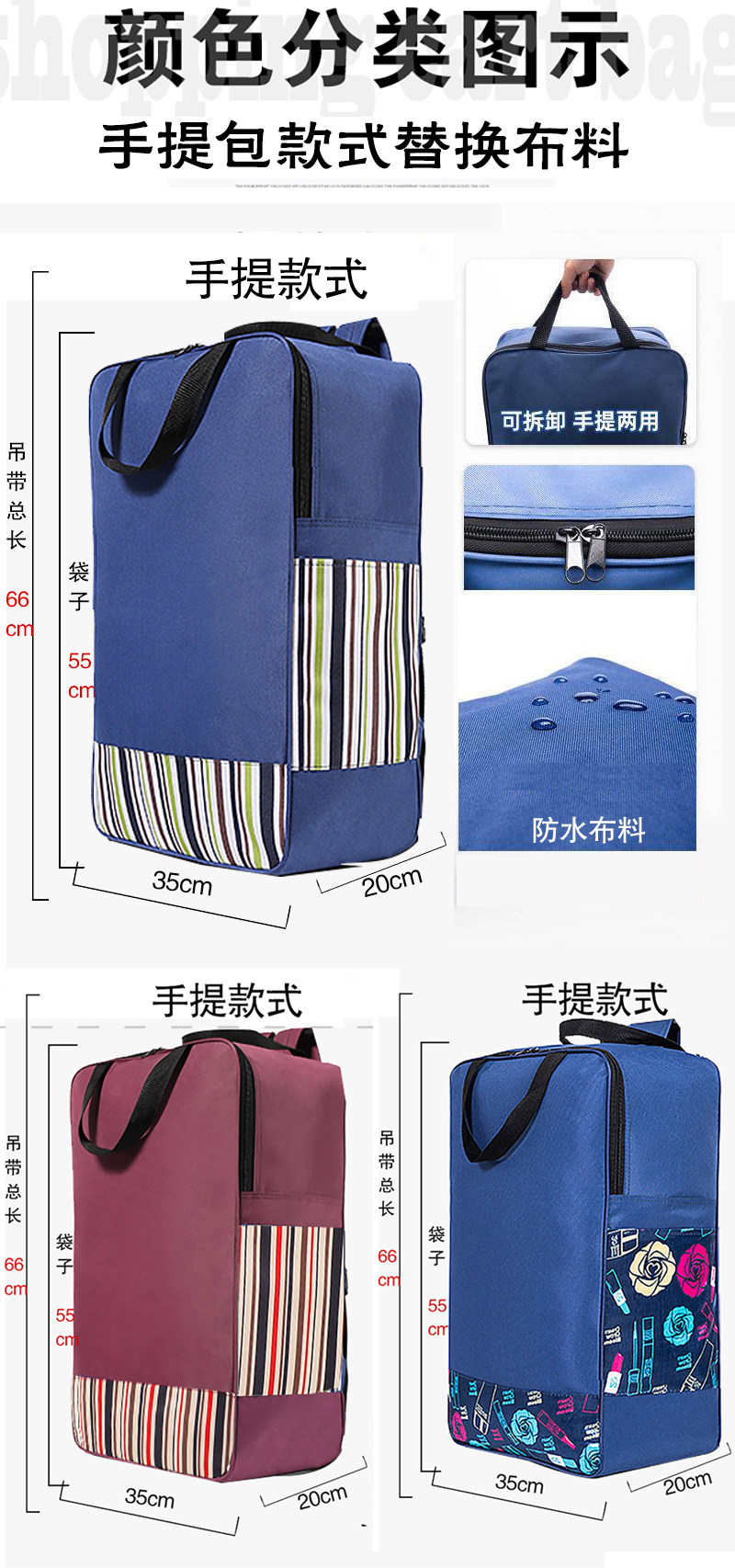 | 颜色分类 | 常规酒红条纹【50*30*20cm】,常规青条纹【50*30*20cm】,升级加大酒红条纹【55*34*20cm】,升级加大宝蓝条纹【55*34*20cm】,升级加大黑底月季【55*34*20cm】,升级加大猫头鹰【55*34*20cm】,升级加大青条纹【55*34*20cm】,升级加大青底口红【55*34*20cm】,升级加大咖啡梅花【55*34*20cm】,升级加大藏蓝树叶【55*34*20cm】,升级加大青底蔬果【55*34*20cm】,升级加大黑底梅花【55*34*20cm】,升级加大迷彩军绿【55*34*20cm】,升级加大唯美树叶【55*34*20cm】,升级加大桔黄圆点【55*34*20cm】,升级加大梦幻星星【55*34*20cm】,升级加大黑底彩点【55*34*20cm】,升级加大藏青口红【55*34*20cm】,升级加大藏青百合【55*34*20cm】,手提款拼色口红【55*35*20cm】,手提款青条纹【55*35*20cm】,手提款酒红条纹【55*35*20cm】,中号青条纹【50*32*20cm】,中号紫红条纹【50*32*20cm】,小号颜色随机【48*28*18cm】,加密纯色藏青色【50*30*20cm】,加密纯色酒红色【50*30*20cm】,双层布无涂层藏青色【55*33*20cm】,双层布无涂层酒红色【55*33*20cm】,双层布无涂层孔雀蓝【55*33*20cm】,双层布无涂层灰黑色【55*33*20cm】 |