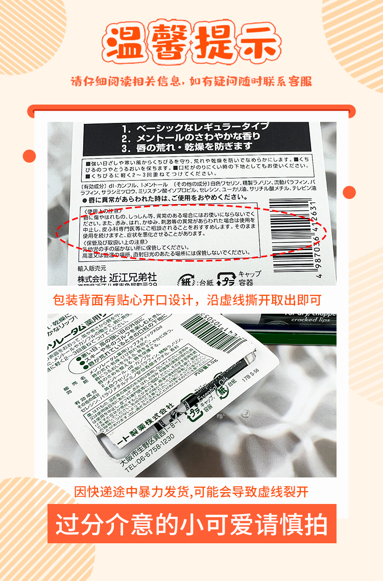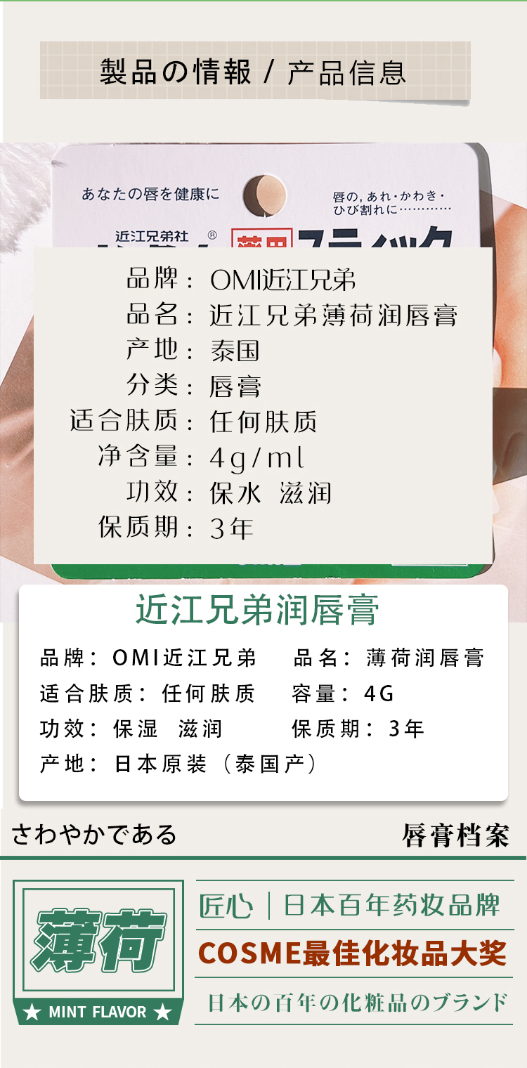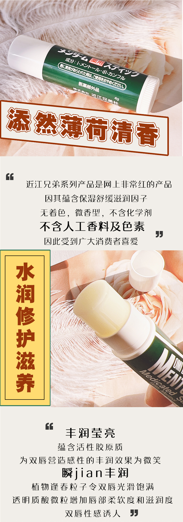 日本COSME大赏omi近江兄弟薄荷润唇膏女保湿滋润护唇膏无色修护男