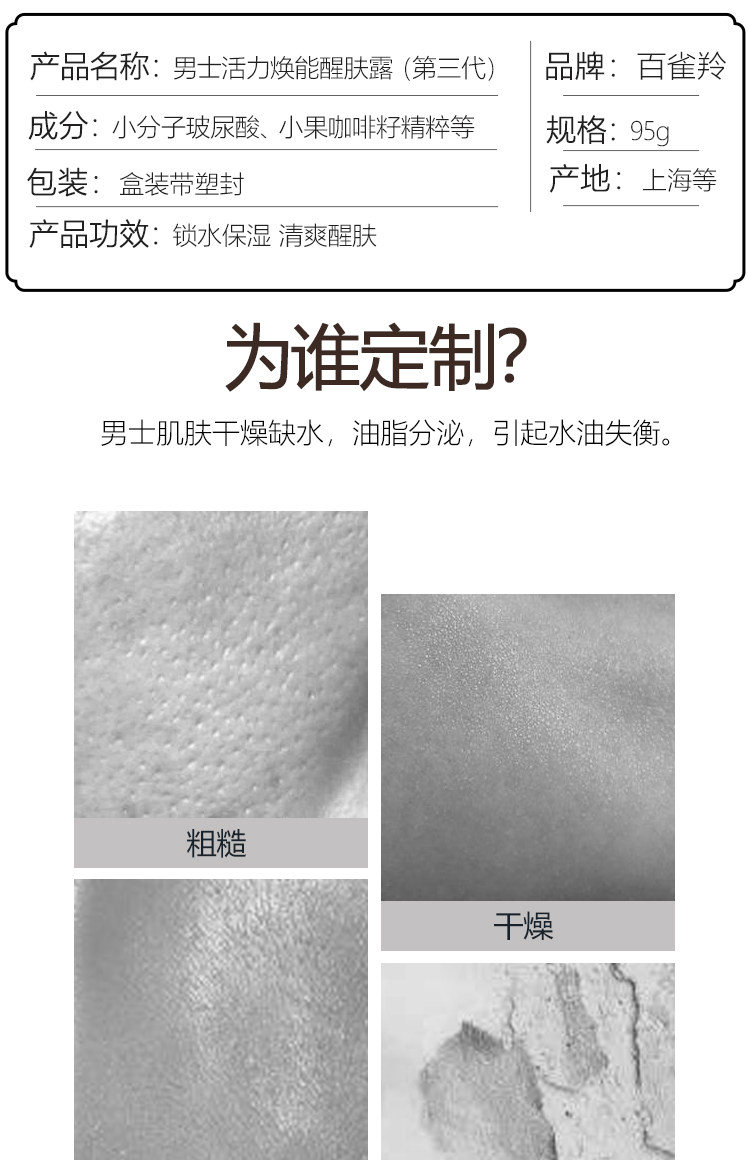 | 产品名称 | 百雀羚男士活力焕能醒肤露(第2代) |