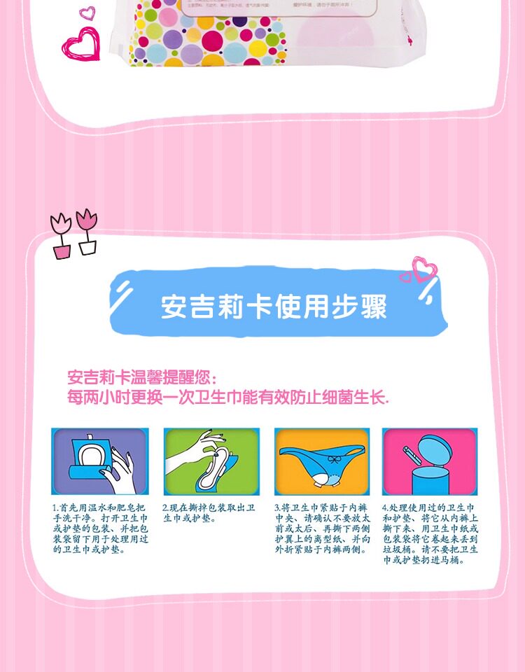 专柜正品韩国新生活安吉莉卡纯棉柔日用卫生巾8片装姨妈巾带护翼