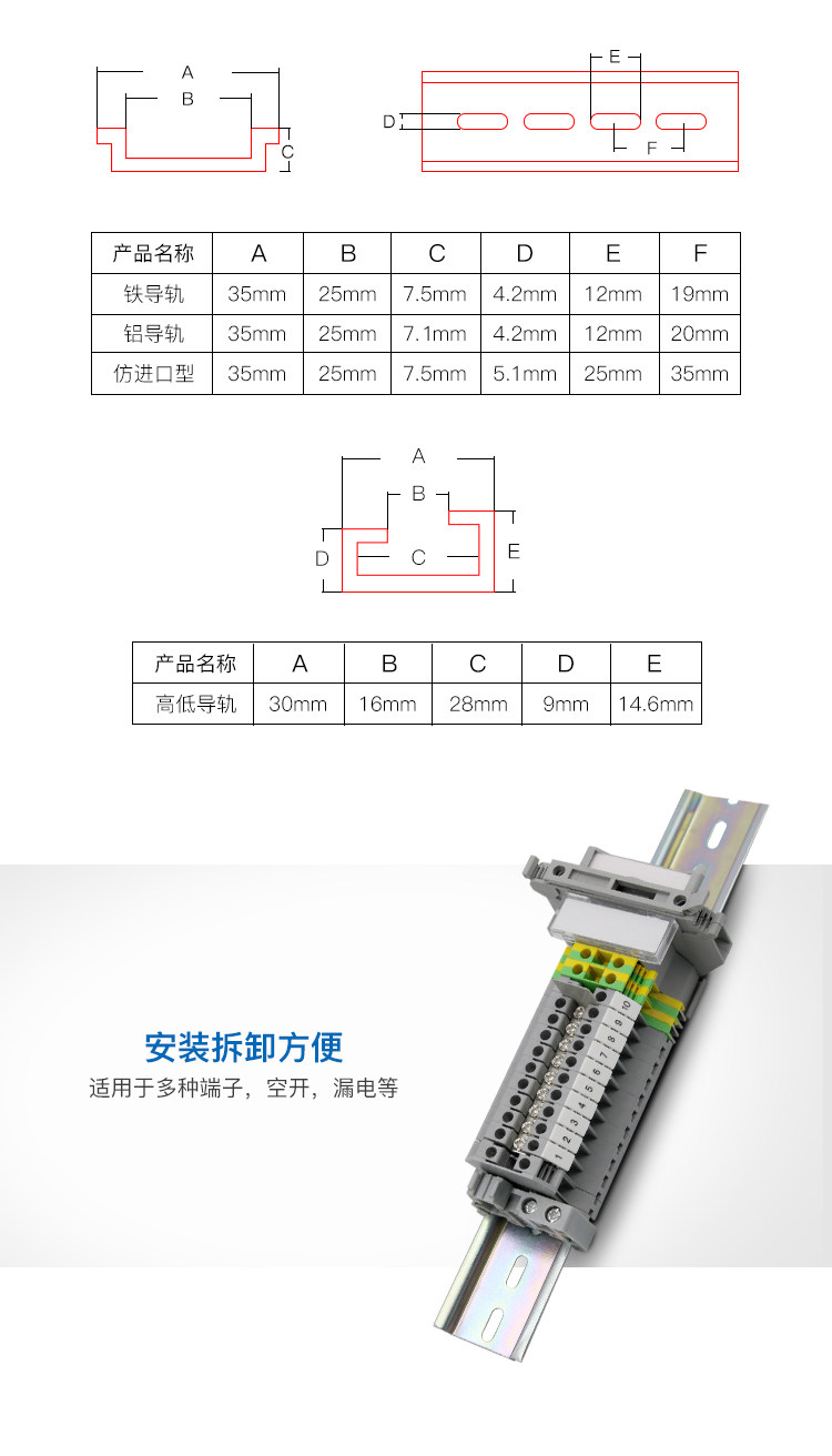 C45国标导轨DZ47断路器继电气空开铝导轨JF5高低轨电箱35mm卡轨道