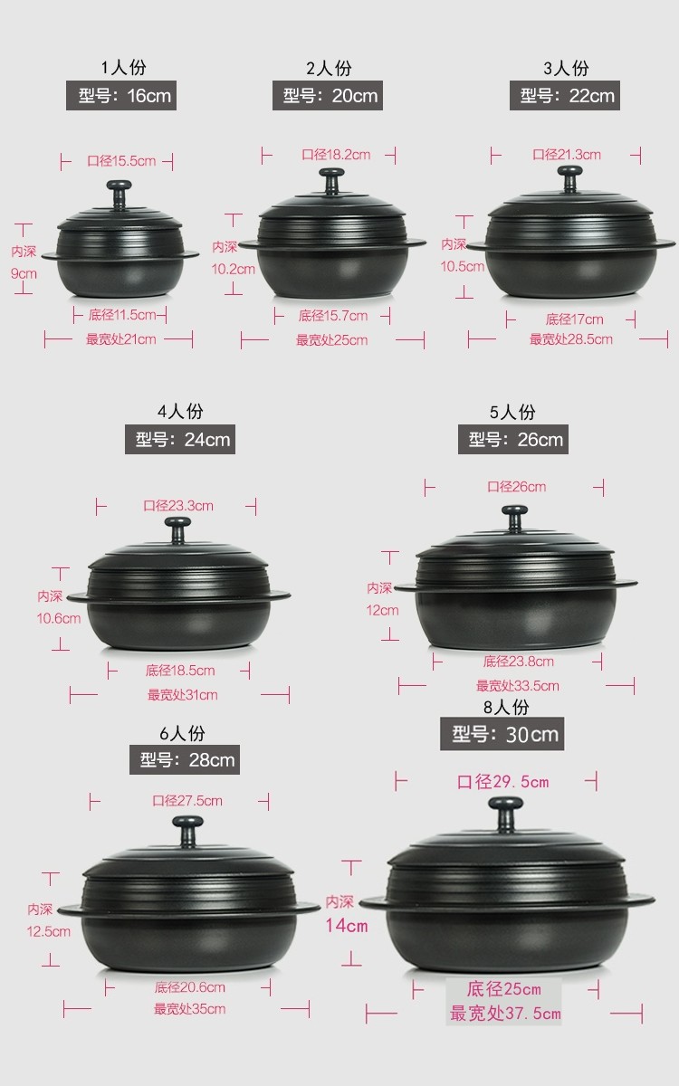 | 颜色分类 | 16CM口径(1人用)有涂层,20CM口径(2人用)有涂层,22CM口径(3人用)有涂层,24CM口径(5人用)有涂层,26CM口径(6人用)有涂层,28CM口径(8人用)有涂层,30CM口径(10人以上人用)有涂层,16CM口径(1人用)无涂层,20CM口径(2人用)无涂层,22CM口径(3人用)无涂层,24CM口径(5人用)无涂层,26CM口径(6人用)无涂层,28CM口径(8人用)无涂层,30CM口径(10人以上用)无涂层 |