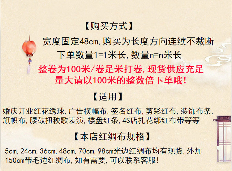 48cm宽大红绸子布布料 涤纶红布 横幅装饰4s店红布花球扎花红面料