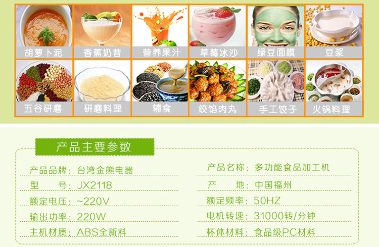 金熊 JX3288多功能婴儿辅食料理机搅拌机食品食物加工机JX2510