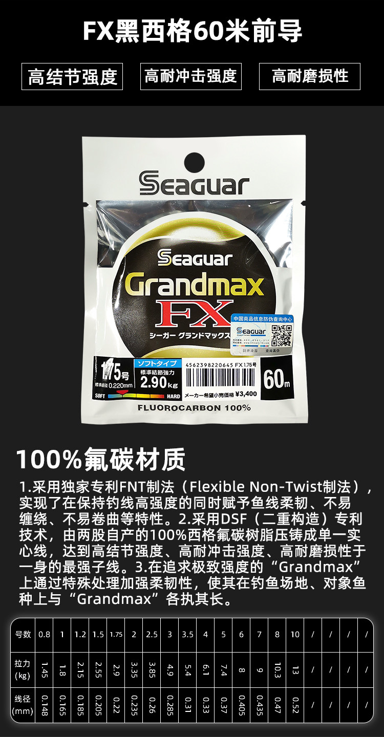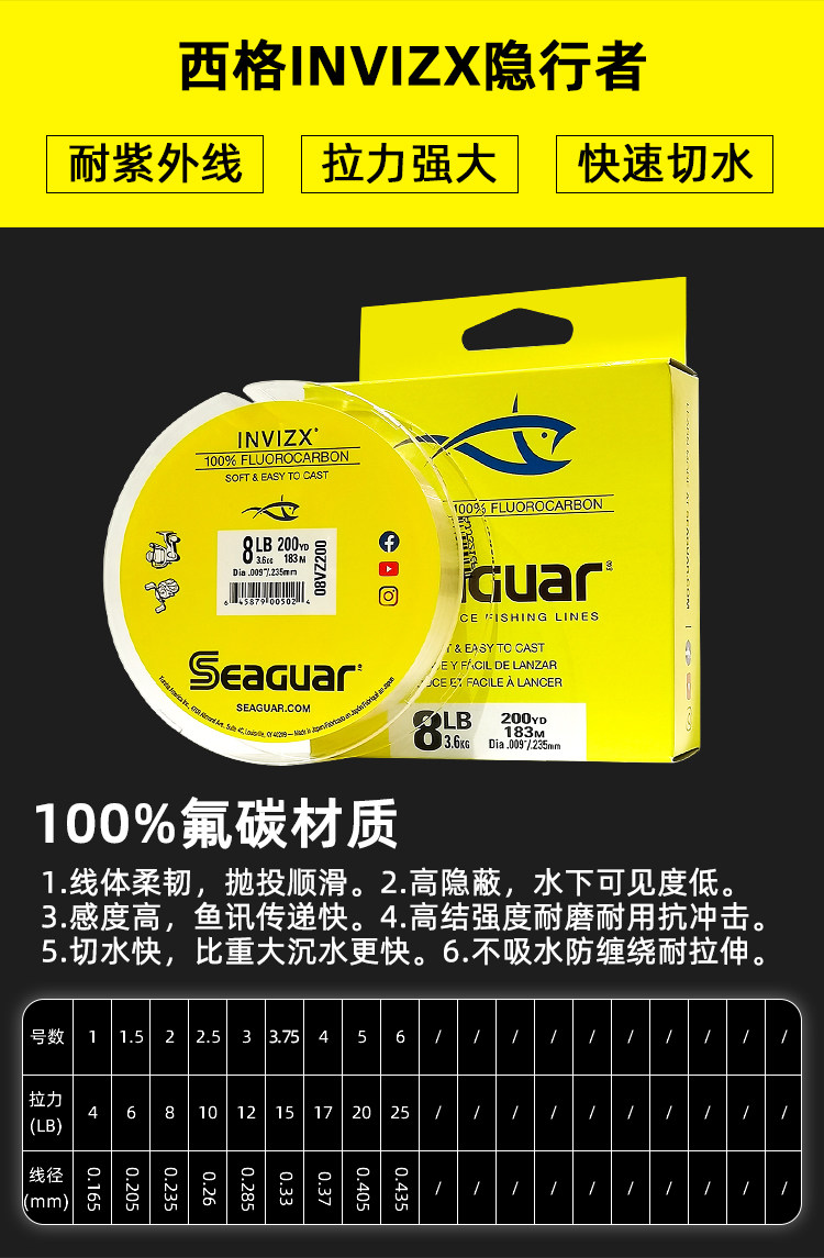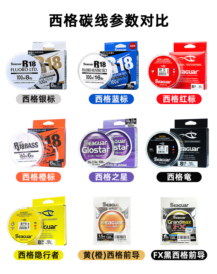| 颜色分类 | INVIZX 隐行者(透明色)183米,西格之星 100米,蓝标100米(透明色),红标 183米(透明色),银标,橙标 60米 前导线,橙标(160米),西格龙,Grandmax FX 黑标 60米,Grandmax 红西格 60米 |