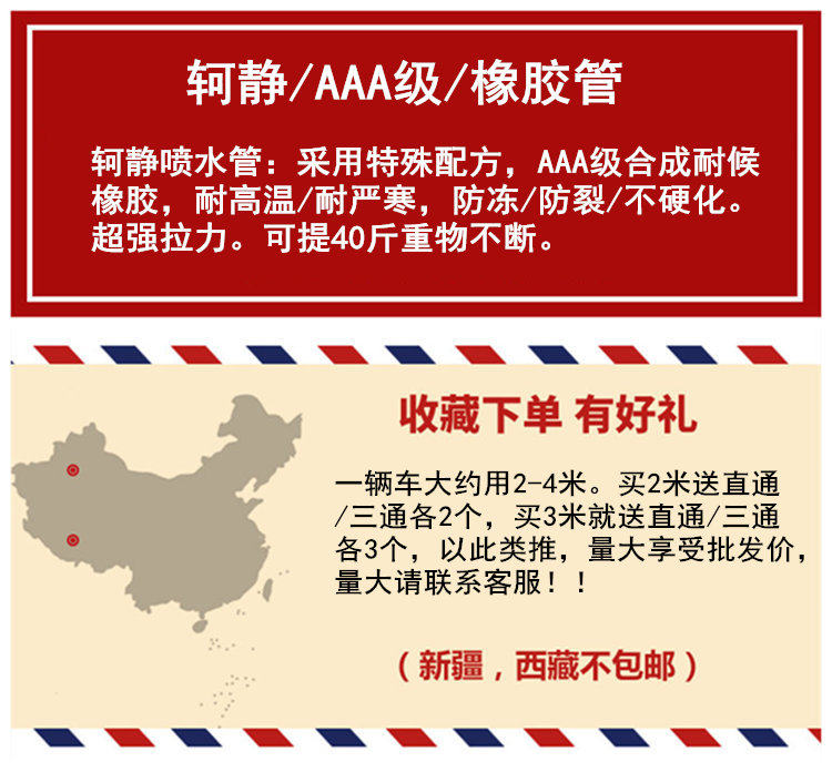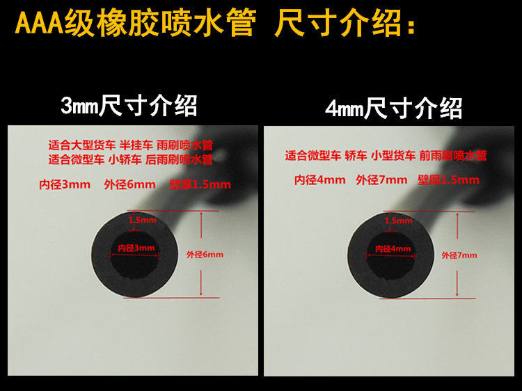 | 颜色分类 | AAA/黑胶管4mm【1米】接头各1个,AAA/黑胶管4mm【2米】接头各2个,AAA/黑胶管4mm【3米】接头各3个,AAA/黑胶管4mm【5米】接头各5个,AAA/黑胶管4mm【10米】送接头,AAA/黑胶管4mm【20米】送接头,AAA/黑胶管4mm【50米】送接头,AAA/黑胶管4mm【100米】送接头,透明管4mm【2米】送接头各2个,透明管4mm【3米】送接头各3个,透明管4mm【5米】送接头各5个,透明管4mm【10米】送接头各10个,透明管4mm【20米】送接头各20个,透明管4mm【50米】送接头各50个,雨刷臂专用【内径3mm 】2米,雨刷臂专用【内径3mm 】3米,雨刷臂专用【内径3mm 】5米,5mm喷水管2米【送接头各2个】,5mm喷水管3米【送接头各3个】,5mm喷水管5米【送接头各5个】,【直通】5个包邮,【Y通】5个包邮,【T通】5个包邮 |