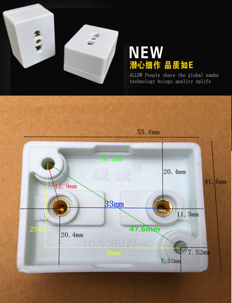 规格:10A插座:长宽高: 5.5*4.1*3厘米
