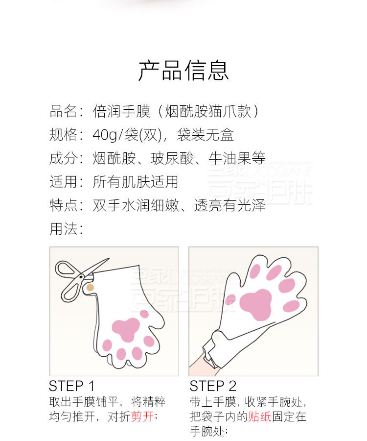 | Color Options | Niacinamide Hand Mask 4 packs (pairs), Niacinamide Hand Mask 8 packs (pairs), Cat Paw Hand Mask 10 packs (pairs) |