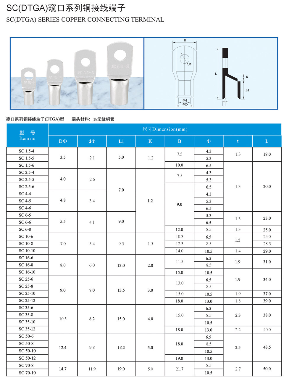 Genuine Phoenix SC50MM 2-Square Ship Use Inspection Copper Terminal Connector (DTGA) Copper Lug