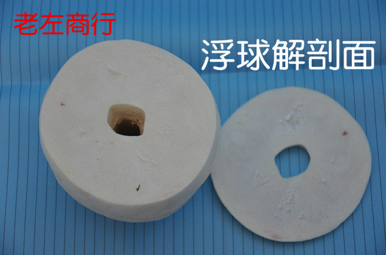 产品生产过程:浮球为填充磨具内《发泡液压》热气蒸煮成型,烘干冷却会有萎缩情况,误差0.5--2公分属于正常产品!!!浮球的形状,因为浮球生产成型到烘干会有挤压变形,不是标准球形。
