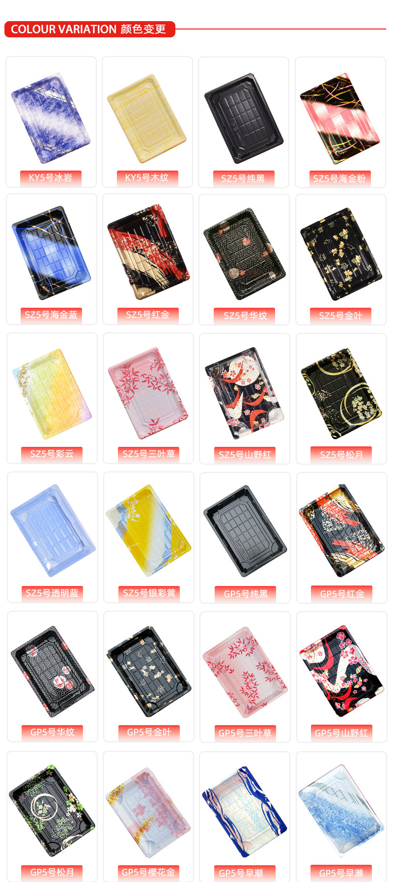 | Color Options | No.5 Exquisite Pure Black 100 sets, No.5 High Lid Gold Leaf 100 sets, No.5 High Lid Pure Gold 100 sets, No.5 High Lid Pine Moon 100 sets, No.5 High Lid Floral Pattern 100 sets, No.5 High Lid Jingche White 100 sets, No.5 High Lid Silver Blue 100 sets, No.5 High Lid Fortune Fan Orange 100 sets, No.5 High Lid Maple Weave Blue 100 sets, No.5 High Lid Colorful Cloud 100 sets, No.5 High Lid Orange Gold Grid 100 sets, No.5 High Lid Red Gold 100 sets, No.5 High Lid Mountain Wild Red 100 sets, No.5 Plate Fuji A Green 100 sets, No.5 Plate Taihu Blue 100 sets, No.5 Plate Floral Pink 100 sets, Zosara No.5 Step Fish Green 100 sets, Zosara No.5 Bell Crane Red 100 sets, No.5 High Lid Pure Black 400 sets, No.5 Exquisite Pure Black 400 sets, No.5 High Lid Gold Leaf 400 sets, No.5 High Lid Jingche White 400 sets, No.5 High Lid Floral Pattern 400 sets, No.5 High Lid Pure Gold 400 sets, No.5 High Lid Orange Gold Grid 400 sets, No.5 High Lid Silver Blue 400 sets, No.5 High Lid Sky Bamboo 400 sets, No.5 High Lid Green Gold Grid 400 sets, No.5 High Lid Fortune Fan Orange 400 sets, No.5 High Lid Maple Weave Blue 400 sets, No.5 High Lid Mountain Wild Red 400 sets, No.5 High Lid Colorful Cloud 400 sets, No.5 High Lid Cherry Blossom Gold 400 sets, No.5 High Lid Red Gold 400 sets, No.5 High Lid Pine Moon 400 sets, No.5 High Lid Ice Rock 400 sets, No.5 High Lid Silver Yellow 400 sets, No.5 High Lid Wood Grain 400 sets, No.5 High Lid Early Rapids 400 sets, No.5 High Lid Clover 400 sets, No.5 Zosara Crane Bell Red 400 sets, No.5 Plate Taihu Blue 400 sets, No.5 Plate Gold Powder Family 400 sets, No.5 Plate Jade Green 400 sets, No.5 Plate Fuji A Green 400 sets, No.5 Plate Floral Pink 400 sets, No.5 Zosara Step Fish Green 400 sets |