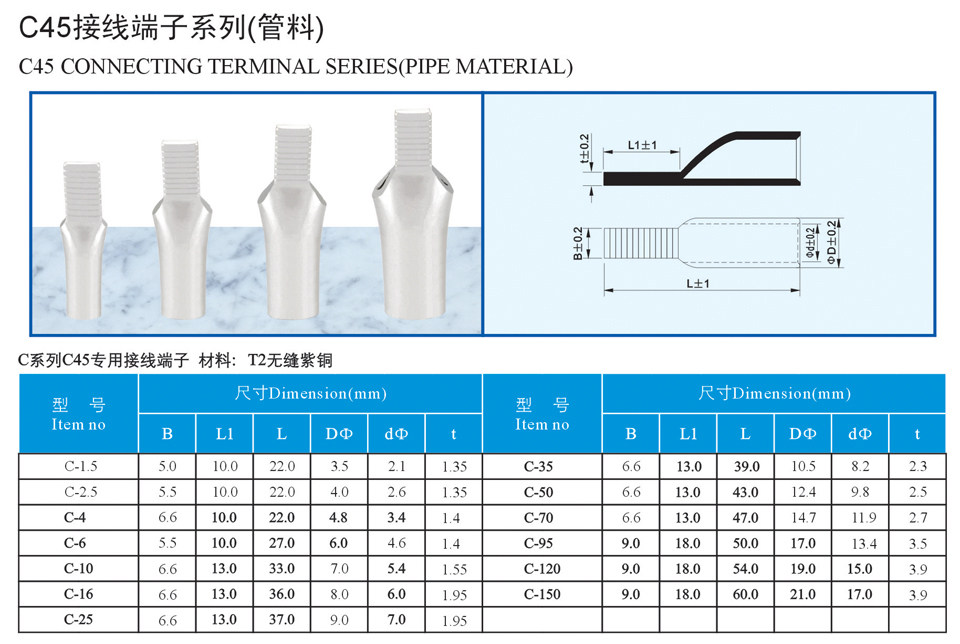 Genuine Phoenix National Standard Single Press Insert C45-25mm² Terminal Connector Circuit Breaker Terminal Duckbill Copper Lug