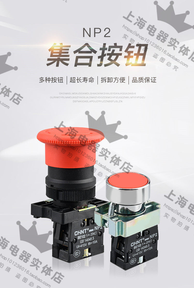 | Цветовые варианты | NP2-BS541 красный 1 нормально открытая (НО) аварийная грибовидная кнопка, NP2-BA21 черный 1 НО, NP2-BA31 зеленый 1 НО, NP2-BA42 красный 1 нормальнозамкнутая (НЗ), NP2-BA35 зеленый 1 НО 1 НЗ, NP2-BA45 красный 1 НО 1 НЗ, NP2-BA51 желтый 1 НО, NP2-BA61 синий 1 НО, NP2-BC41 красный 1 НО грибовидная кнопка с самовозвратом, NP2-BD21 двухпозиционный переключатель 1 НО, NP2-BD25 двухпозиционный переключатель 1 НО 1 НЗ, NP2-BD33 трехпозиционный переключатель 2 НО, NP2-BD53 трехпозиционный переключатель с самовозвратом 2 НО, NP2-BG21 двухпозиционный ключевой переключатель 1 НО, NP2-BS542 красный 1 НЗ аварийная грибовидная кнопка, NP2-BW3361 220В зеленый с подсветкой 1 НО, NP2-BW3361 24В зеленый с подсветкой 1 НО, NP2-BW3462 220В красный с подсветкой 1 НЗ, NP2-BW3462 24В красный с подсветкой 1 НЗ, NP2-BW3561 220В желтый с подсветкой 1 НО, NP2-BW3561 24В желтый с подсветкой 1 НО, NP2-BA41 красный 1 НО, Контакты NP2-BE102 (10 шт.) НЗ, Контакты NP2-BE101 (10 шт.) НО, NP2-BD23 двухпозиционный переключатель 2 НО |