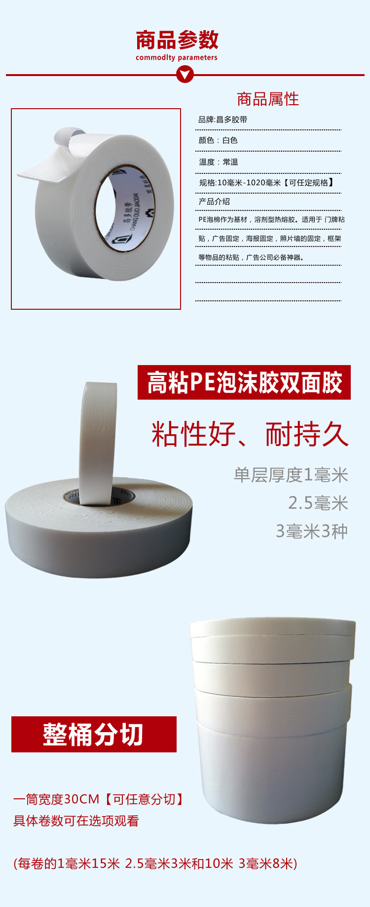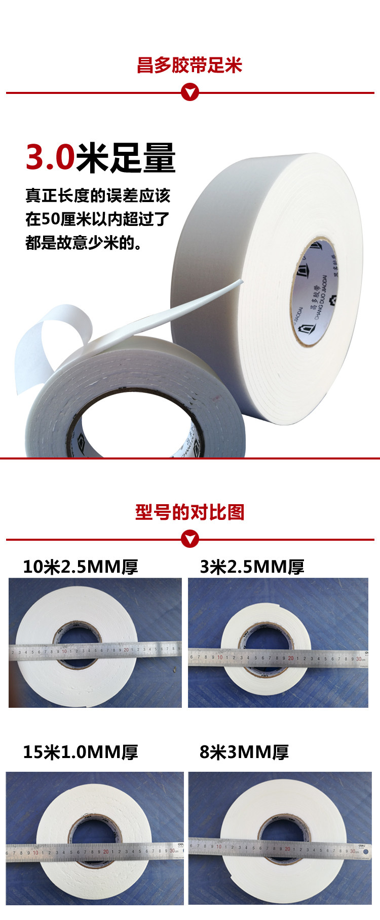 泡棉双面胶 | 宽3.0CM长15M厚1.0MM | 10 | 50 | 3.4 | 170 | |