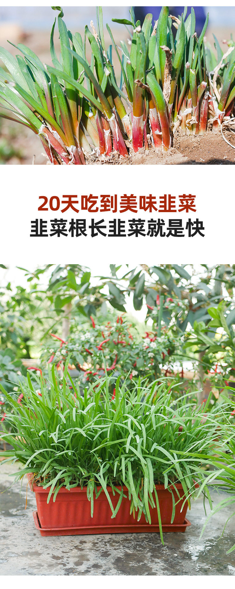 由于温度低,独根红韭菜根正处于休眠状态,温度15度以上种植后会需20天左右发芽,雪韭不会休眠,温度合适全年生长独根红韭葱种子