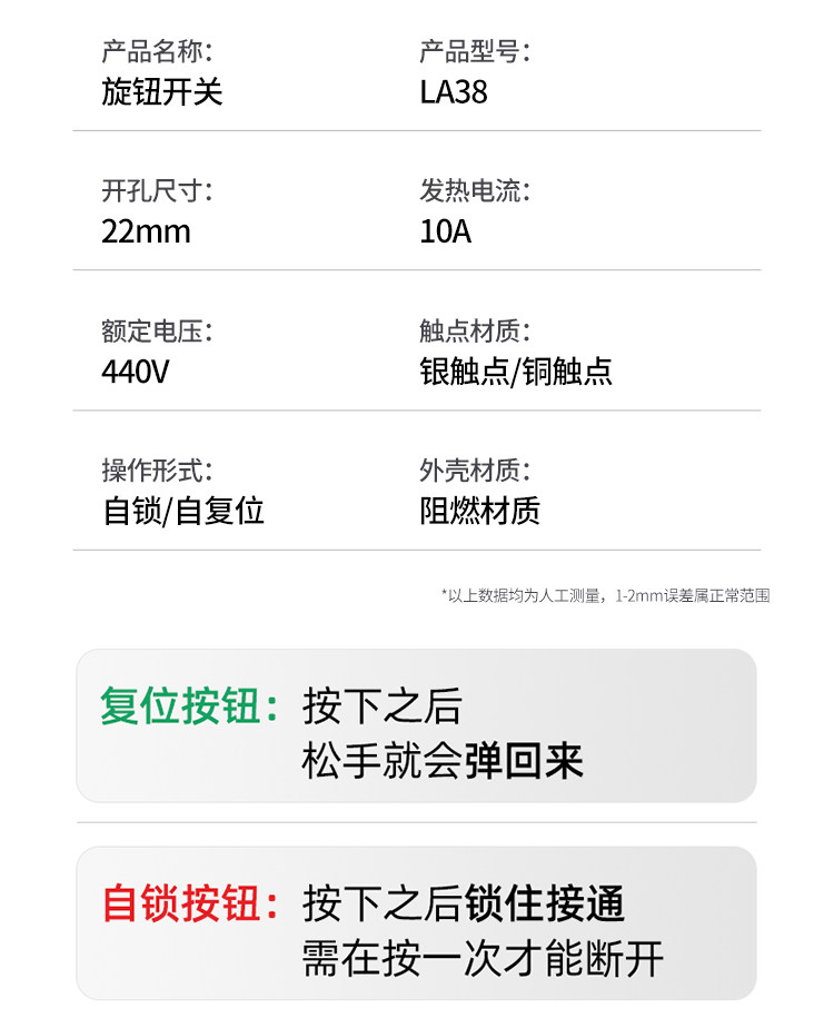 LA38-11X2 [Самоблокирующийся с двумя положениями], LA38-20X3 [Самоблокирующийся с тремя положениями], LA38-11X22 [С автовозвратом, два положения], LA38-20X33 [С автовозвратом, три положения], LA38-11XB/21 [Самоблокирующийся с длинной ручкой, два положения], LA38-20XB/3 [Самоблокирующийся с длинной ручкой, три положения], LA38-10X2 [Самоблокирующийся с двумя положениями, нормально открытый], по особым спецификациям, пожалуйста, укажите дополнительно