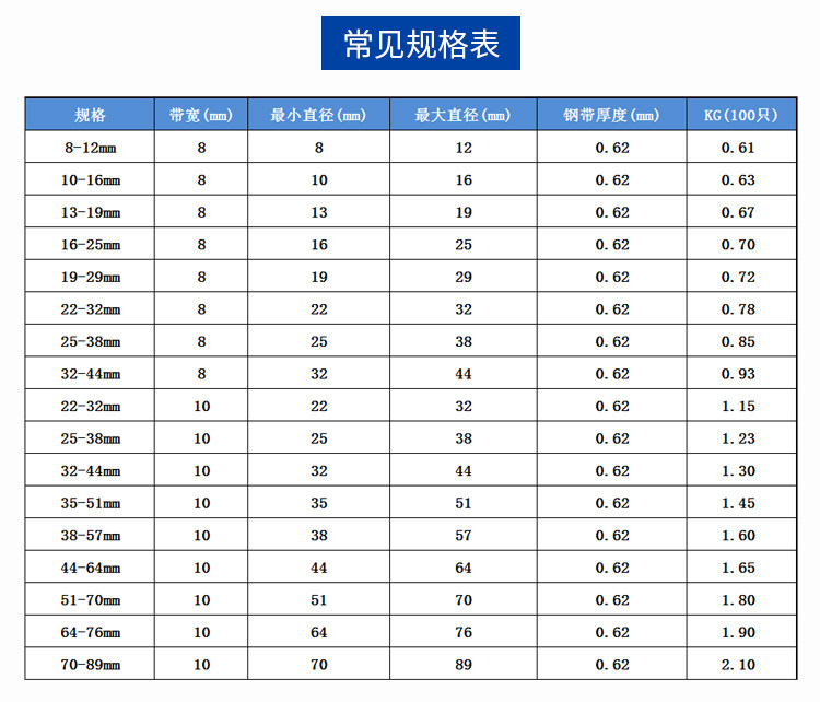 厂家直销不锈钢半钢大美喉箍,尺寸齐全,价格优惠,钢喉箍即钢带为201不锈钢,带宽为12mm,螺丝为铁镀镍,外观跟全钢无区别!需要全钢喉箍请点击http://item.taobao.com/item.htm?spm=686.1000925.1000774.94.MoA1Sy&id=39546377084全钢喉箍为钢带以及螺丝全部为不锈钢材质;