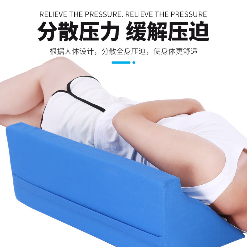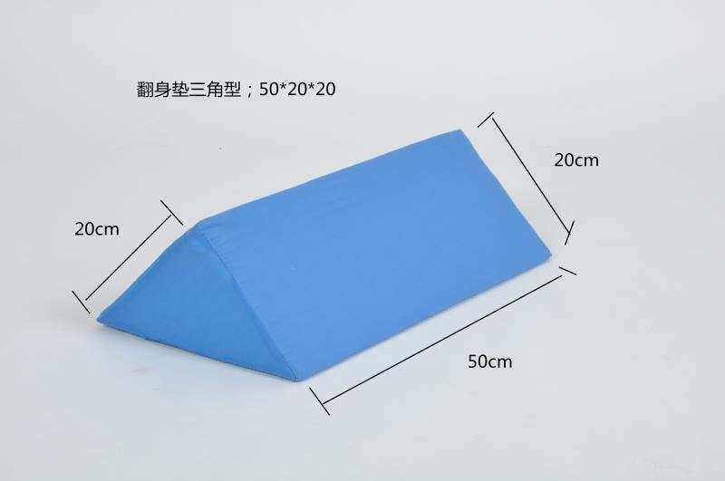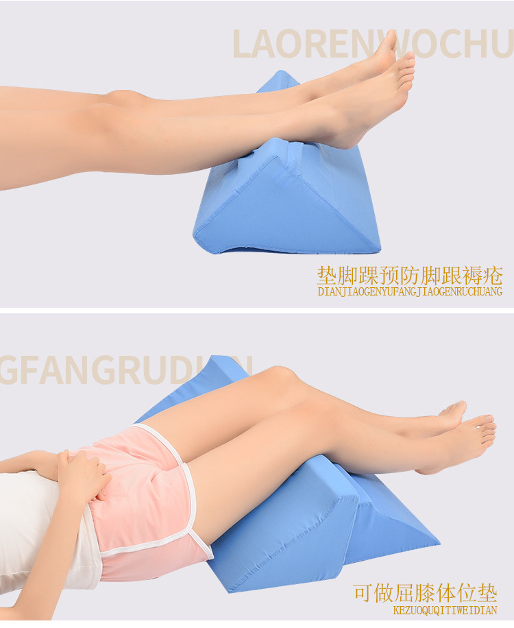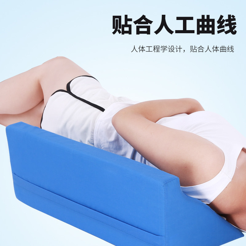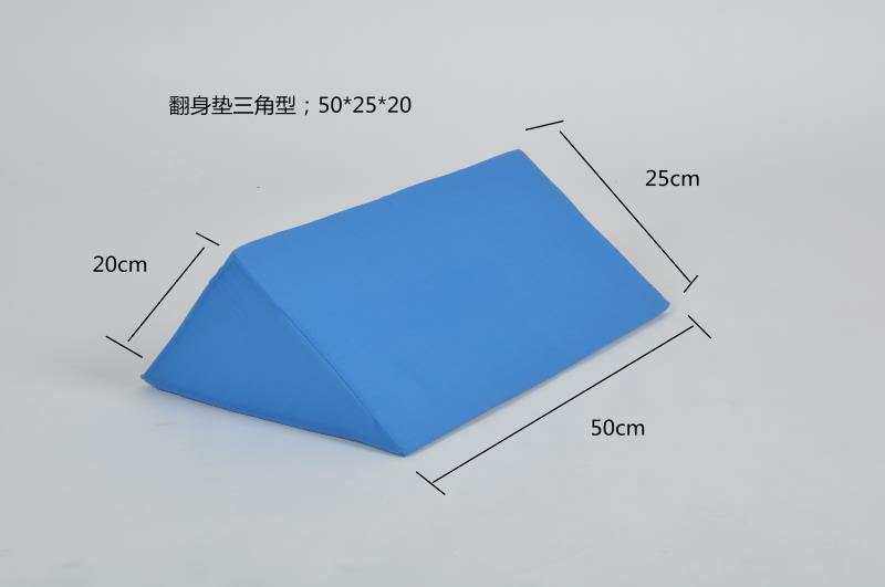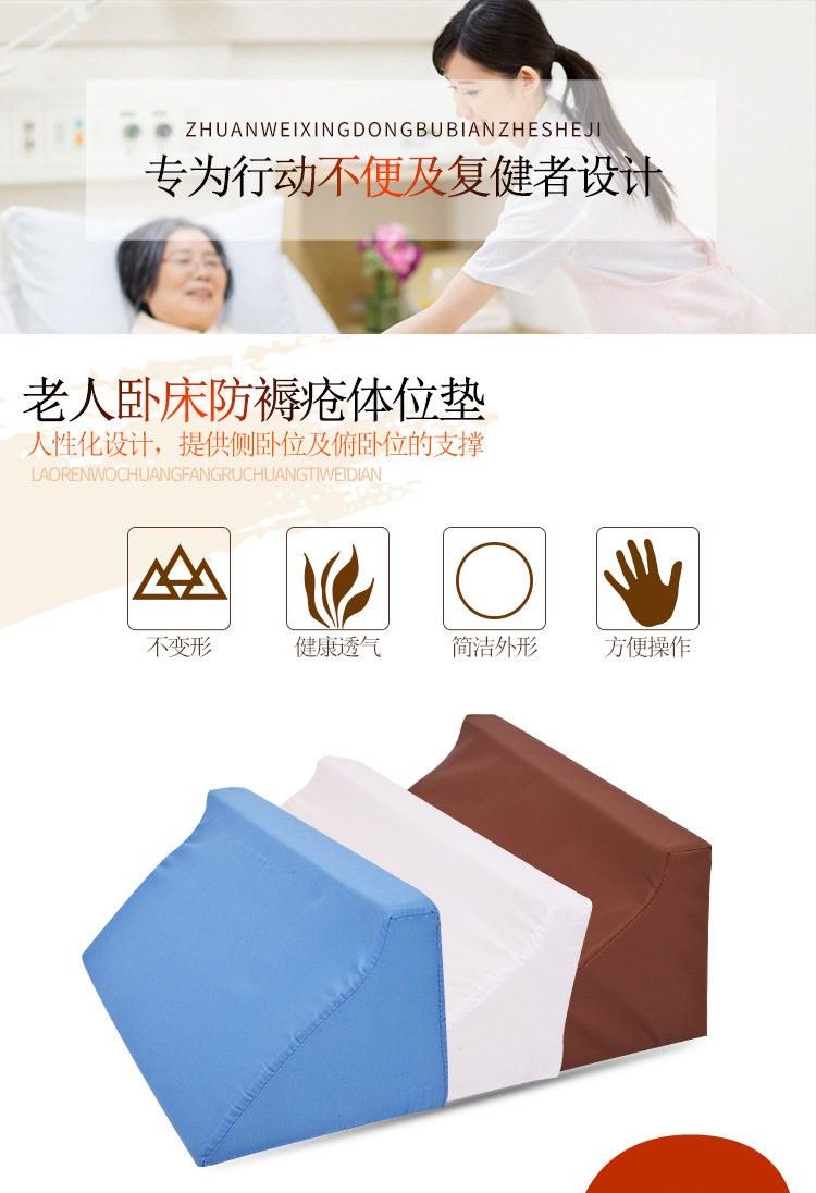 1、长期平躺会对臀部、背部凸出部位造成长时间压迫,血液不循环,极易形成褥疮,给病人带来危害。定时的侧卧能分散这些部位的体压,预防褥疮的产生。但是,侧卧的角度并不是越大越好(这个与孕妇左侧位睡觉的目的有些不同的,孕妇侧卧为了保护胎儿和自身内脏的正常生理机能,所以侧卧接近90度也可以,因为累了,自身有知觉可以调整睡姿),失去知觉或难以行动的病人或老人则完全不同,如果角度过大势必会造成侧部髋骨等突出骨承重太大,形成侧部的褥疮,适得其反。正确的角度是30度左右为好,本R型垫的角度是比较合适的。