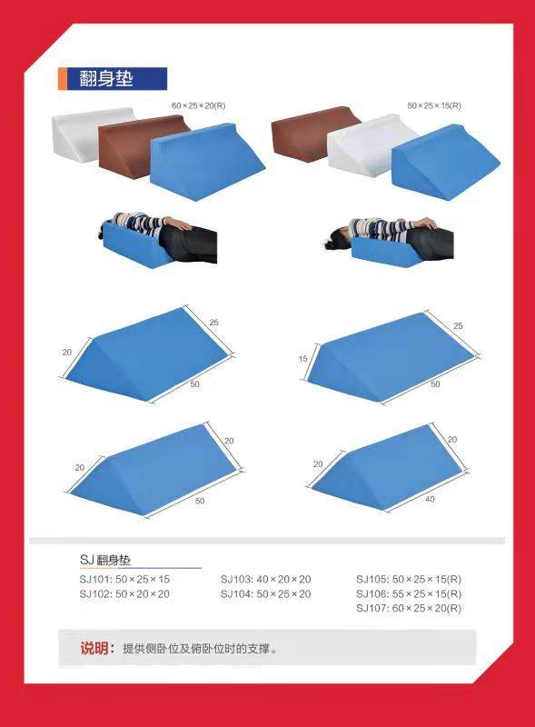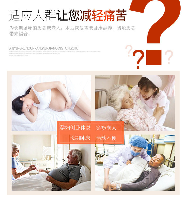 ◆本侧卧垫主要适用于长期卧床的病人或老人,体弱翻身困难或者行动已不能自理。侧卧有两个最基础的作用: