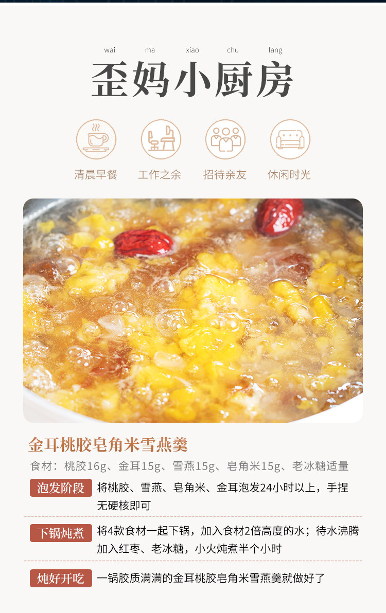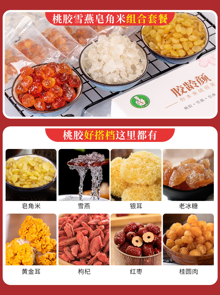 Специальный продукт Wai Ma высшего сорта персиковая смола натуральная 350 г с белой древесной губкой, гледицией и снежным ласточкой