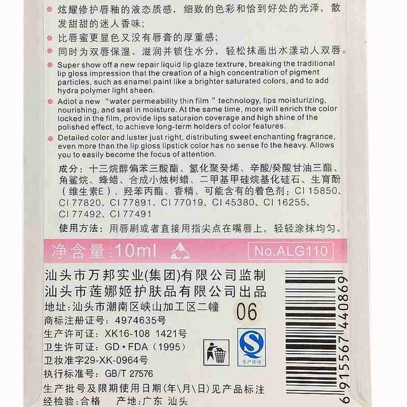 | Номер производственной лицензии | Лицензия на производство косметики Гуандун №20160618 |